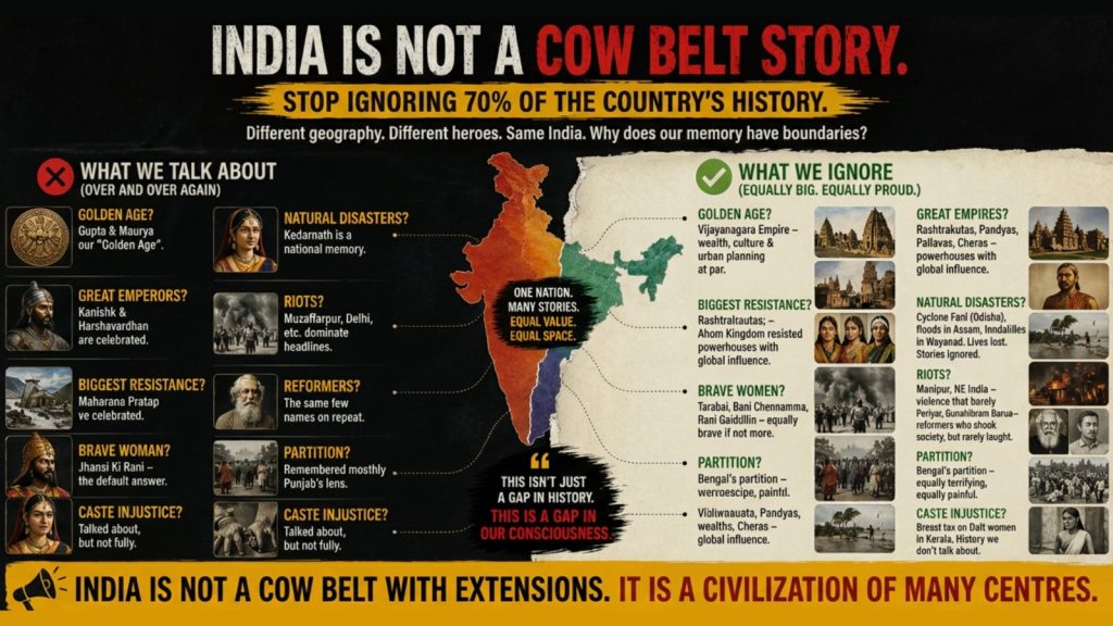 India Doesn’t Have a Shared National Narrative India doesn’t have a shared national narrative.It has a geographically biased script—and the cow belt is the lead character. Everything else? Supporting cast. If that. We don’t just “prefer” certain histories—we repeat them until they become the only history people know. The Gupta Empire and Maurya Empire are […]